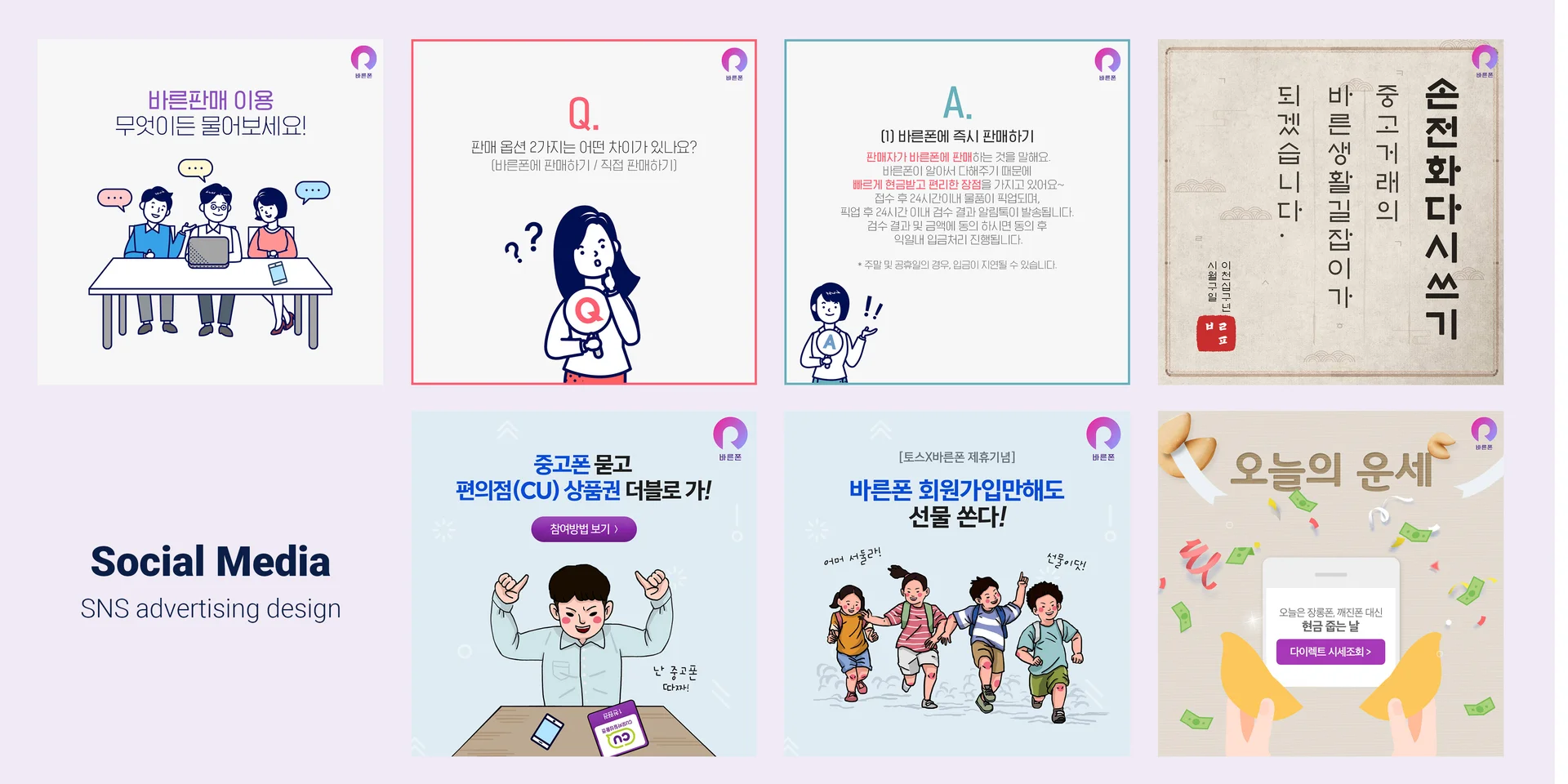 Because the used phone sales service has a wide range of users from young people in their 20s to 40s and 50s, it needed a design that anyone could understand and feel friendly.
